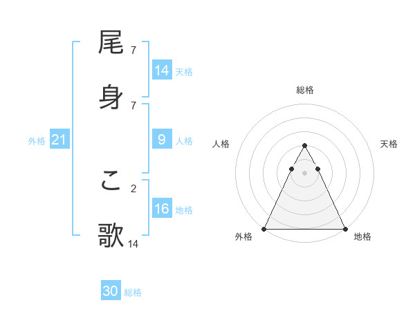 尾身 こ歌さんの外格は21画の5点!