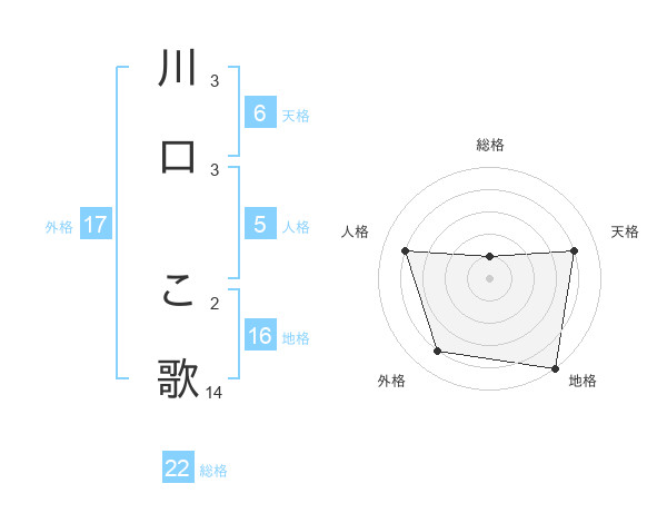 川口 こ歌さんの外格は17画の4点!