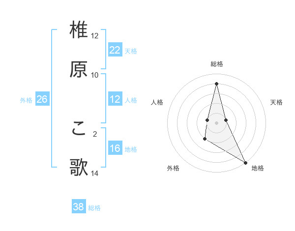 椎原 こ歌さんを姓名の画数から五運を鑑定