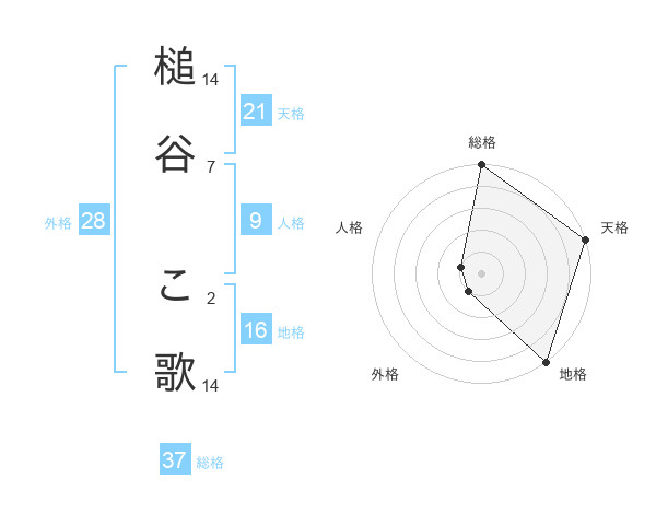 槌谷 こ歌さんの総格は37画の5点!