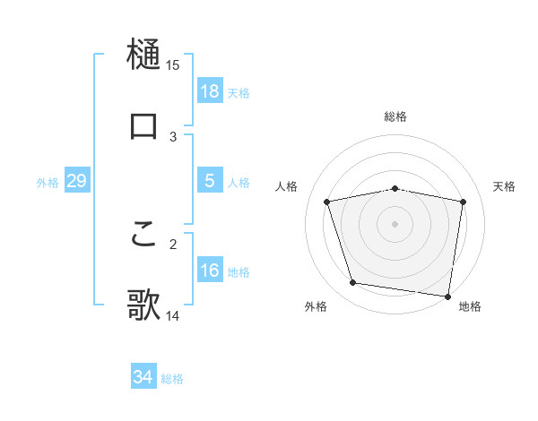 樋口 こ歌さんを姓名の画数から五運を鑑定