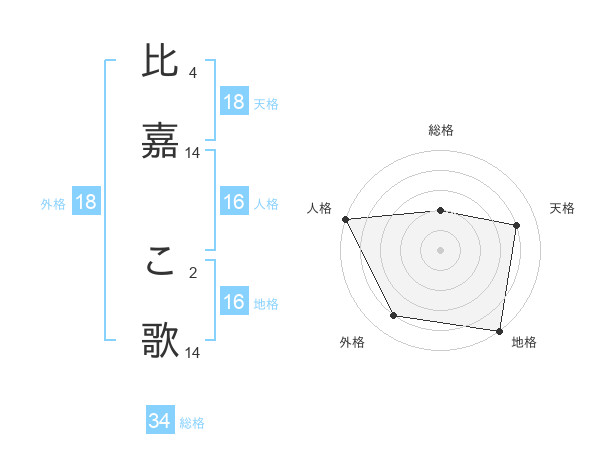比嘉 こ歌さんを姓名の画数から五運を鑑定
