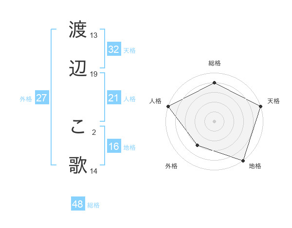渡辺 こ歌さんの天格は32画の5点!