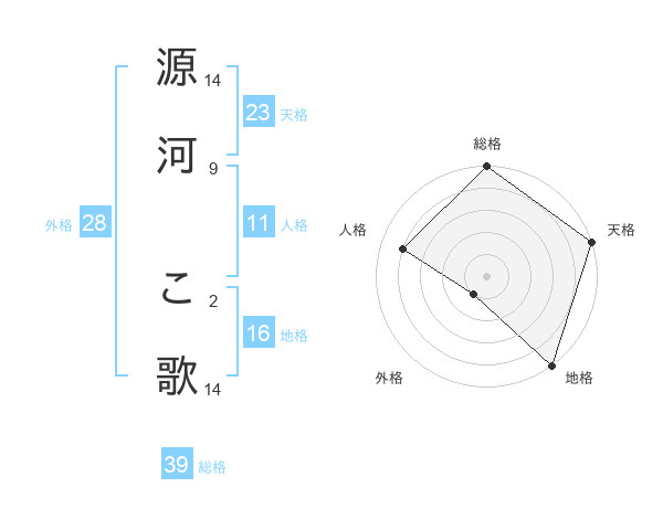 源河 こ歌さんの総格は39画の5点!