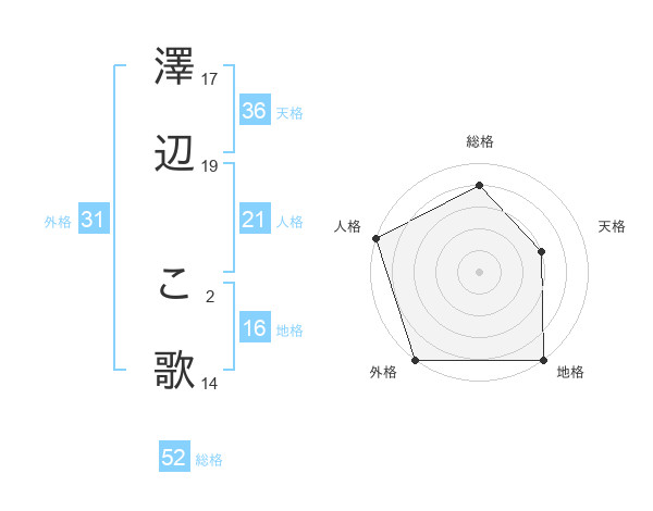 澤辺 こ歌さんの外格は31画の5点!