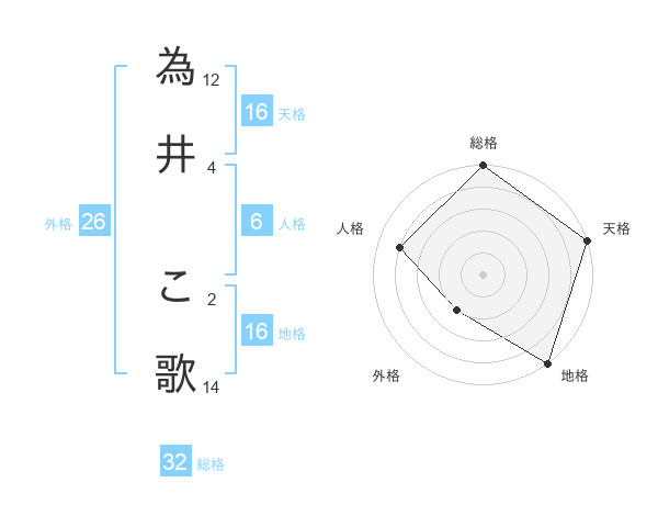 為井 こ歌さんの総格は32画の5点!