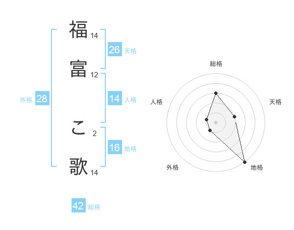 福富 こ歌さんを姓名の画数から五運を鑑定