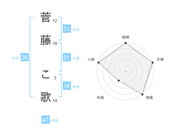 菅藤 こ歌さんを姓名の画数から五運を鑑定