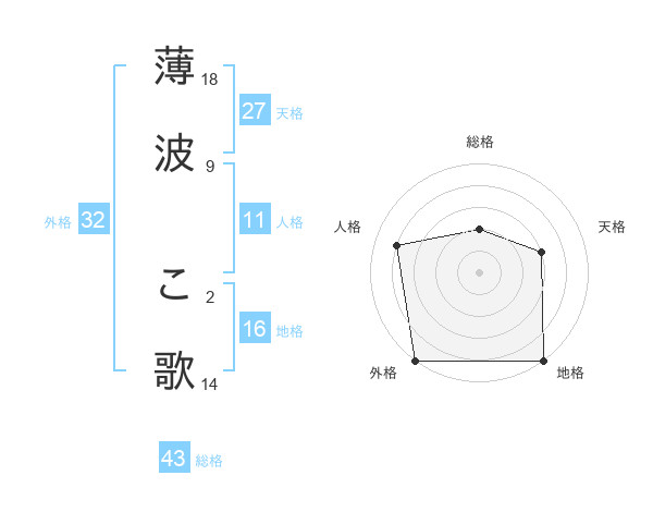 薄波 こ歌さんの総格は43画の2点!