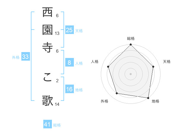 西園寺 こ歌さんの外格は33画の4点!