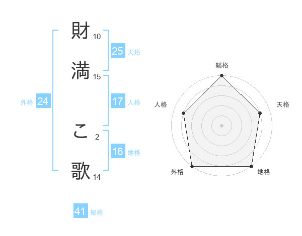 財満 こ歌さんを姓名の画数から五運を鑑定