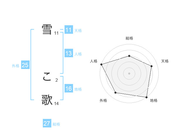 雪 こ歌さんの総格は27画の3点!
