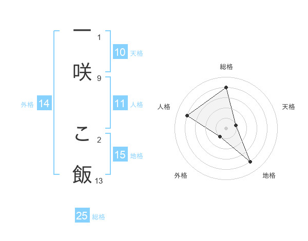 一咲 こ飯さんを姓名の画数から五運を鑑定