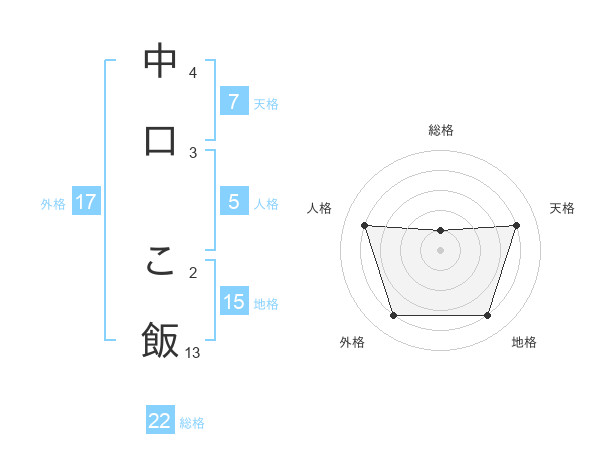 中口 こ飯さんの総格は22画の1点!
