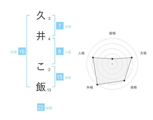 久井 こ飯さんを姓名の画数から五運を鑑定