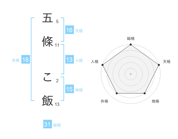 五條 こ飯さんの総格は31画の5点!