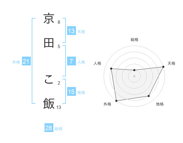 京田 こ飯さんの天格は13画の5点!