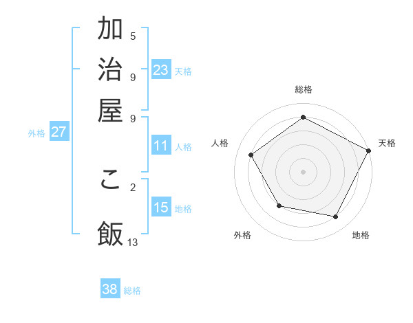 加治屋 こ飯さんの天格は23画の5点