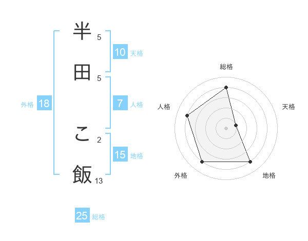 半田 こ飯さんの総格は25画の4点!