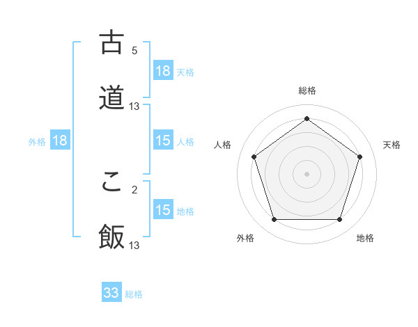 古道 こ飯さんの総格は33画の4点!