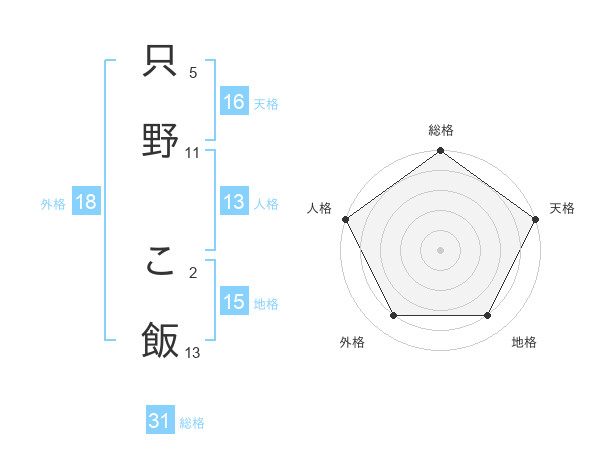 只野 こ飯さんを姓名の画数から五運を鑑定