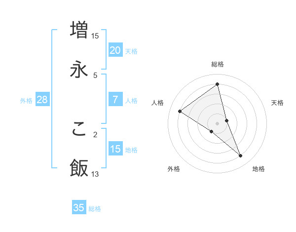 増永 こ飯さんの総格は35画の4点!