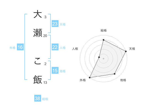 大瀬 こ飯さんの総格は38画の4点!