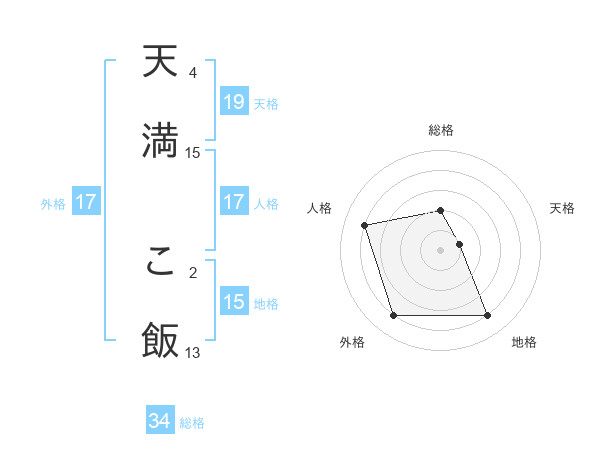 天満 こ飯さんを姓名の画数から五運を鑑定