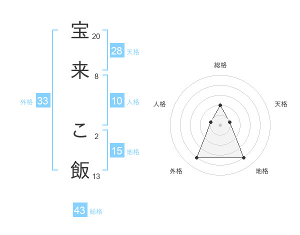 宝来 こ飯さんの総格は43画の2点!