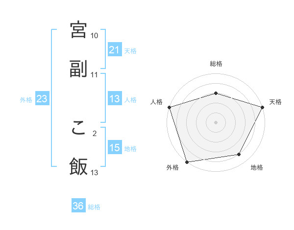 宮副 こ飯さんの天格は21画の5点!