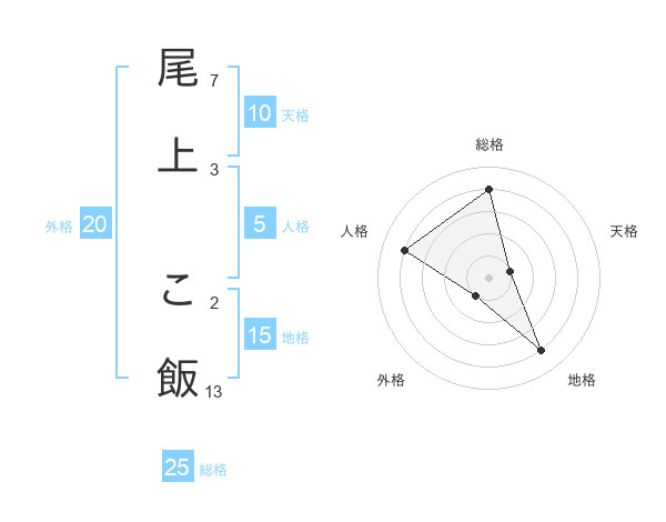 尾上 こ飯さんを姓名の画数から五運を鑑定