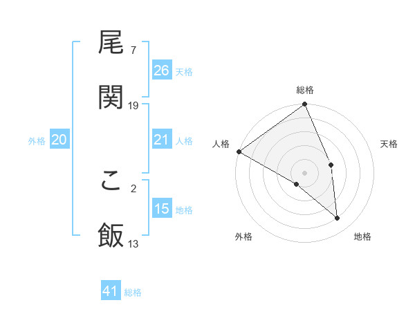 尾関 こ飯さんの総格は41画の5点!