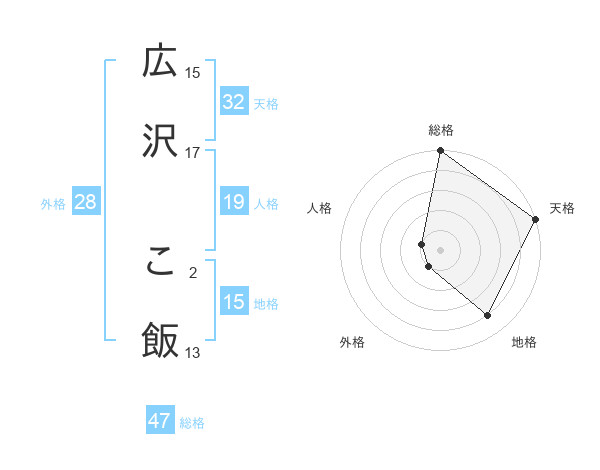 広沢 こ飯さんの総格は47画の5点!