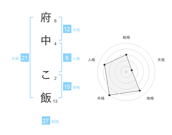 府中 こ飯さんの総格は27画の3点!
