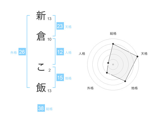 新倉 こ飯さんの総格は38画の4点!