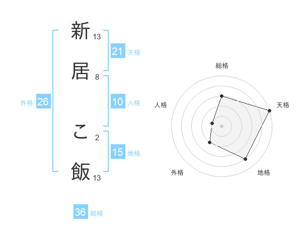 新居 こ飯さんを姓名の画数から五運を鑑定