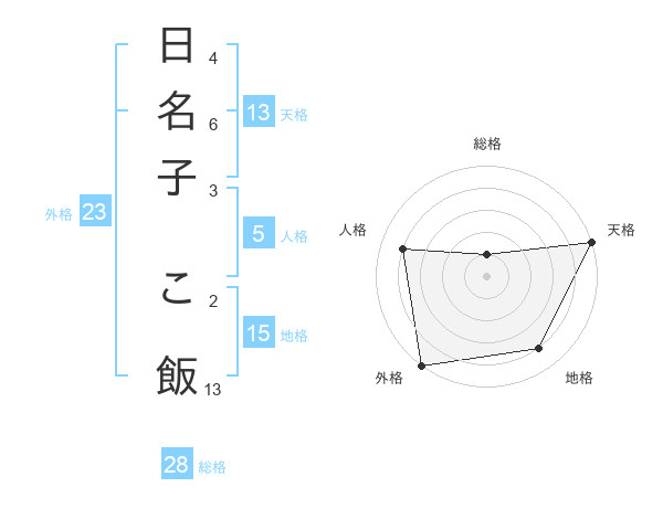 日名子 こ飯さんの天格は13画の5点!