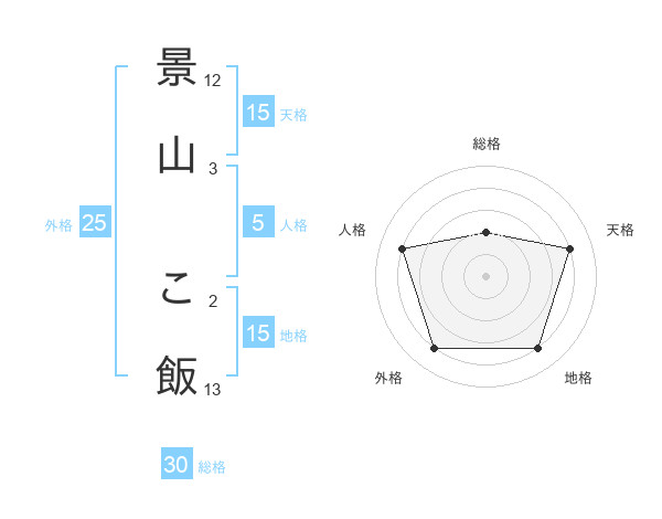 景山 こ飯さんの総格は30画の2点!
