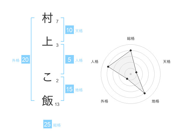 村上 こ飯さんを姓名の画数から五運を鑑定