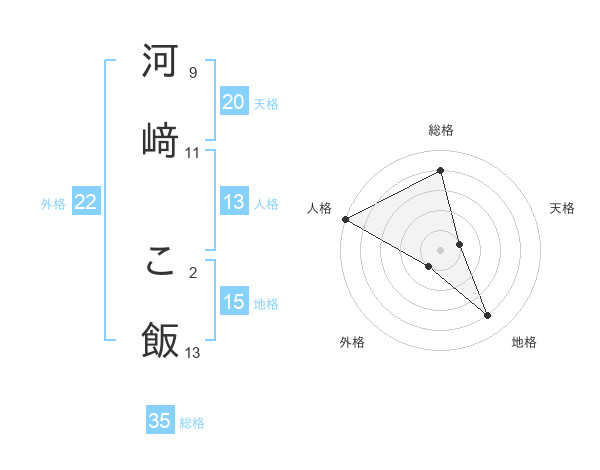 河﨑 こ飯さんの地格は15画の4点!