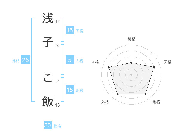 浅子 こ飯さんを姓名の画数から五運を鑑定