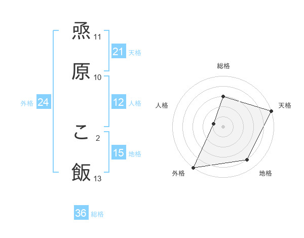 焏原 こ飯さんの天格は21画の5点!