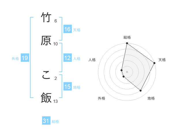 竹原 こ飯さんを姓名の画数から五運を鑑定