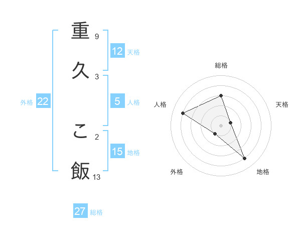 重久 こ飯さんを姓名の画数から五運を鑑定