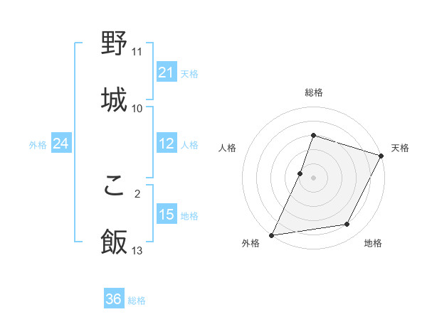 野城 こ飯さんを姓名の画数から五運を鑑定