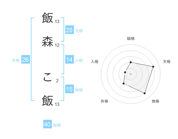 飯森 こ飯さんの天格は25画の4点!