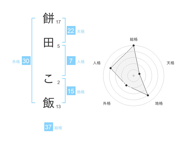 餅田 こ飯さんを姓名の画数から五運を鑑定