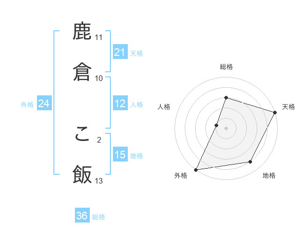 鹿倉 こ飯さんの総格は36画の3点!