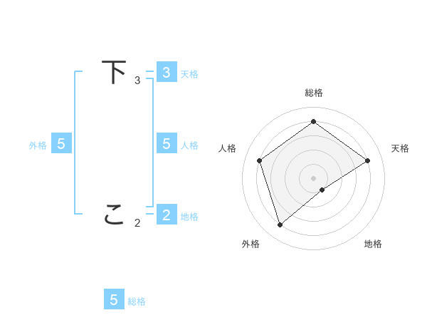 下 こさんの総格は5画の4点!