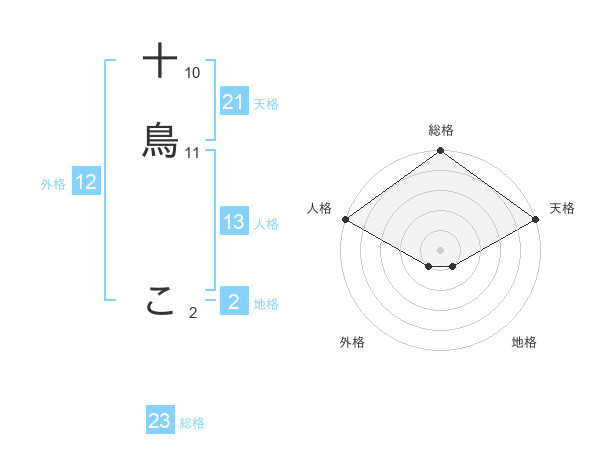 十鳥 こさんの総格は23画の5点!